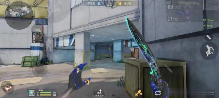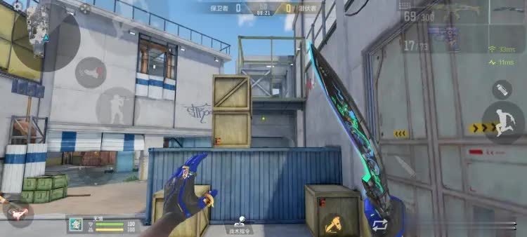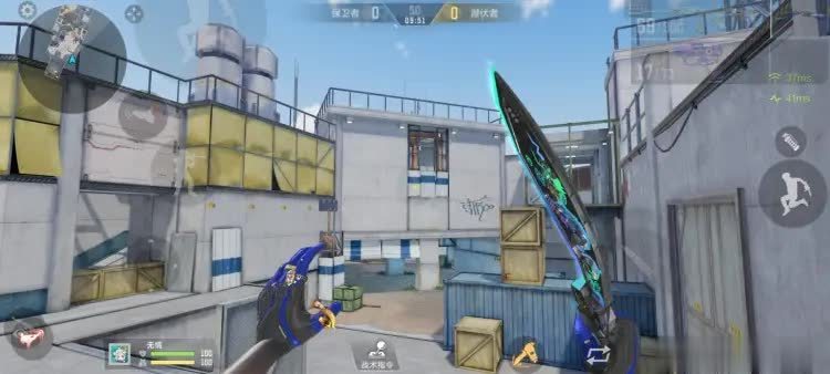 后续我们可以选择前顶,到达敌方集装箱后的小木箱,就可以攻击到敌方复活点的敌人;当然我们还可以跳到集装箱上,来打前往左侧上平台区域的敌人。