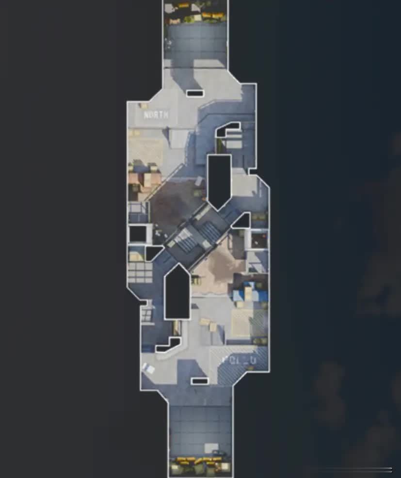 右侧道路是双方共用的一个高台,高台正中间是横梁,左右两侧各有一个楼梯,两方将会在此处交汇,而此处也是本张地图最核心的点位之一。
